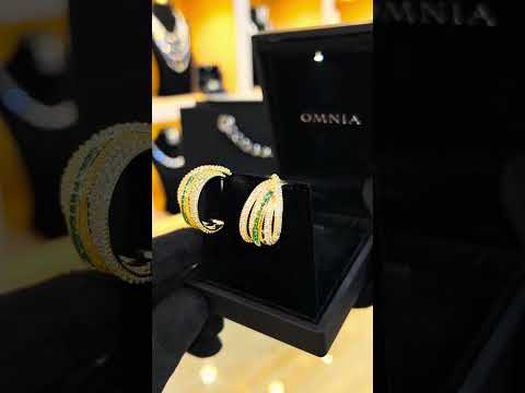 Omnia Emerald Glow Double Tone Wrap Hoop Earrings in High Quality Rhodium Plated