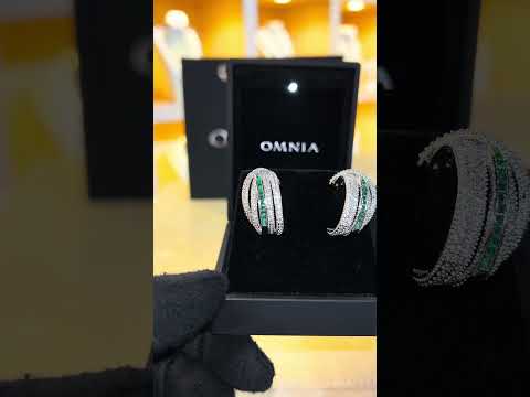 Omnia Emerald Radiance Double Tone Wrap Hoop Earrings in High Quality Rhodium Plated