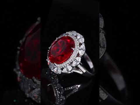 The Omnia Emina Red Ring is a powerful and luxurious statement piece crafted to bring bold elegance and timeless beauty to your look. Made from premium 925 sterling silver, this exquisite ring features a GRC Certified Ruby Red Lab Grown Stone in a stunning oval 12x16mm cut — known for its deep red hue, exceptional clarity, and captivating brilliance.
