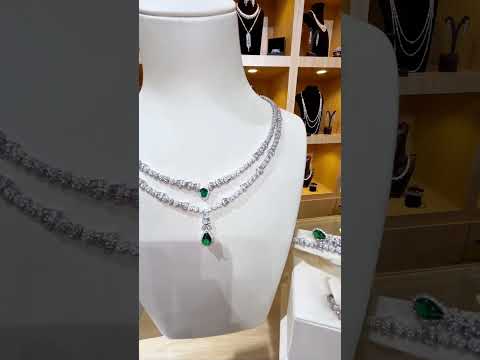 Omnia Ethereal Green Drop-Down Pear Shape Full Set in Rhodium Plated