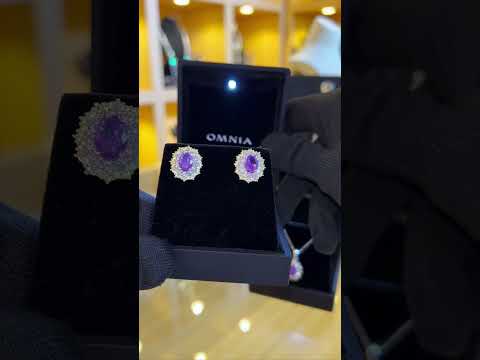 Omnia Faryal Oval Purple Stone Stud Earrings – Bloom in elegance with these stunning oval stone studs, crafted in 92.5 silver and accented with high-quality simulated diamonds. Perfect for adding a bold, graceful touch. Shop now!