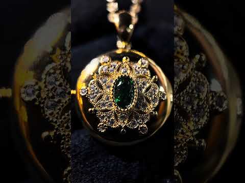 Omnia Firyal Gold Locket Peandant Necklace In 925 Silver High Quality Certified Lab Crafted Green Stones