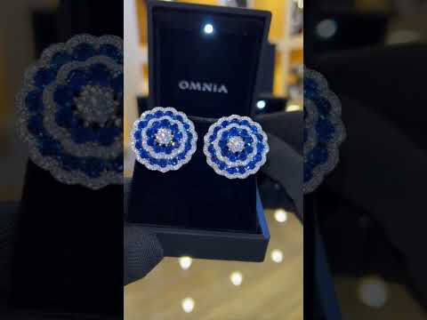 Omnia Floral Halo Earrings with Sapphire Blue Simulated Diamonds in 92.5 Silver
