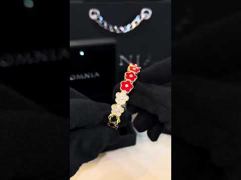 Omnia Golden Cuff With Bracelet and Ring with Red Star Shaped In Rhodium Plated