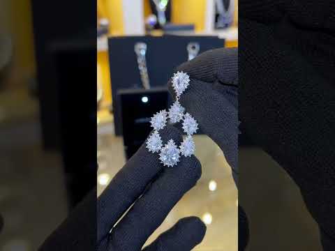 Omnia Hamem Teardrop Chandelier Earrings with White Zircon in High Quality Rhodium Plated