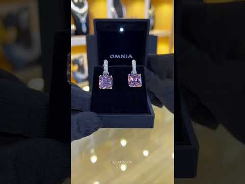 Omnia Helen Cushion Cut Drop Earrings with Pink Zircon in High Quality Rhodium Plated