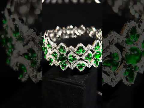Omnia Hiba Green and White Silver Bracelet in 925 Silver High Quality Simulated Diamond Stones