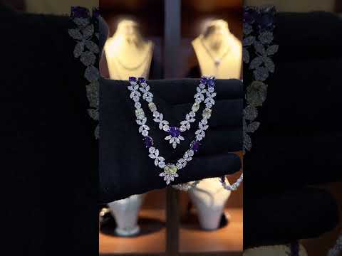 Embellished with high quality zircon stones in radiant yellow and rich purple hues, each stone is expertly precision-cut to enhance brilliance, clarity, and a dazzling diamond-like sparkle. The striking color contrast captures light beautifully, creating a captivating visual appeal that complements both traditional and contemporary bridal styles—perfectly suited for weddings and celebrations across the GCC.