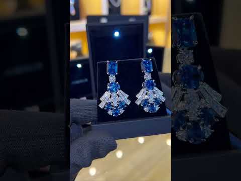 Omnia Karina Blue Mixed-Cut Drop Earrings in 92.5 Silver with High Quality Simulated Diamonds
