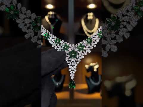 Adorned with high quality green zircon stones, each stone is meticulously precision-cut to deliver exceptional brilliance, clarity, and a refined diamond-like sparkle. The rich green hue symbolizes harmony, prosperity, and elegance, making this set a perfect choice for weddings, engagements, and grand bridal celebrations across the GCC.