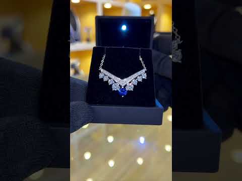 Omnia Layla Blue Necklace in 92.5 Silver with High Quality Simulated Diamonds