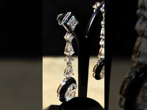 Omnia Layn White and Black Drop Earrings In 925 Silver High Quality Lab Crafted Stones
