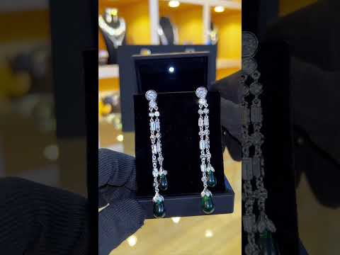 Omnia Leila Long Chain Drop Earrings with Green Teardrop Accent in 92.5 Silver with High Quality Simulated Diamonds