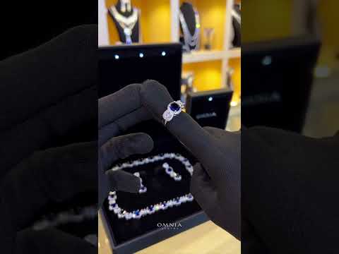 Omnia Lilian Blue Bridal Full Set in High Quality Simulated Diamonds Rhodium Plated
