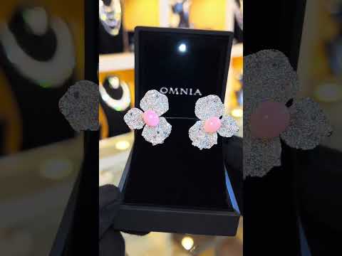 Omnia Lubaina Pink Coral Flower Earrings in 925 Silver Accessories High Quality Simulated Diamonds