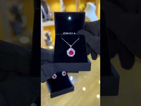 Omnia Mashael Red Pendant Necklace in 92.5 Silver with High Quality Simulated Diamonds
