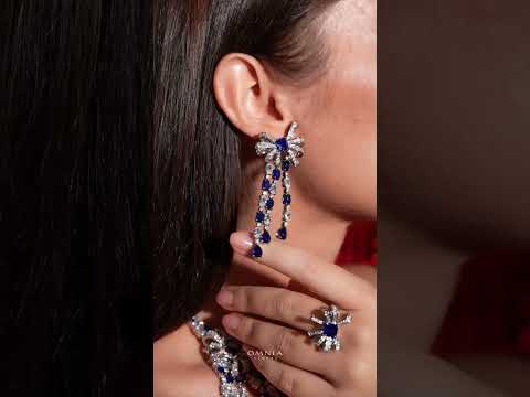 A stunning blue bridal set featuring zircon stones and rhodium plating, offering bold and elegant bridal style. Perfect for bold bridal style. Shop today.