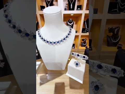 A stunning blue bridal set featuring high-quality simulated diamonds, perfect for a bold and elegant bridal look. Order today and enjoy free shipping.