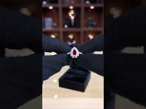 - Design: Pear-shaped design crafted to enhance the stone’s deep red hue and clarity