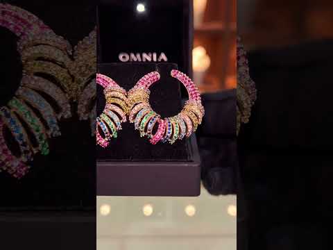 Omnia Narmeen Multicolored Spiral Hoop Earrings with High-Quality Zircon Stones in Rhodium-Plated Finish