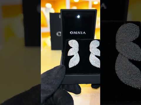 Omnia Nayla Silver Leaf Earrings with Pave-Set High-Quality Zircon Stones in a Rhodium Plated Finish