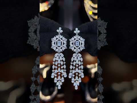Omnia Ola White Bridal Long chain Set Accessories in High Quality Zircon Stone Rhodium Plated