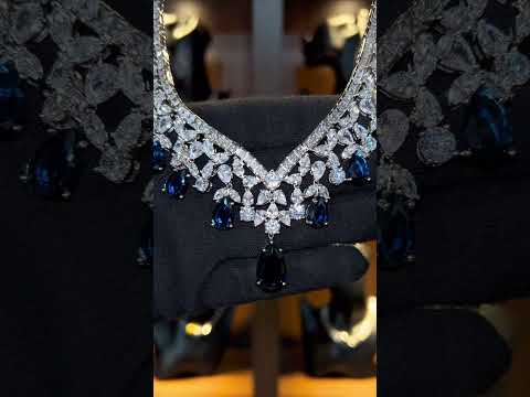 A bold dark blue bridal set with simulated diamonds, offering luxurious elegance for brides.Shop today and enjoy special offers.