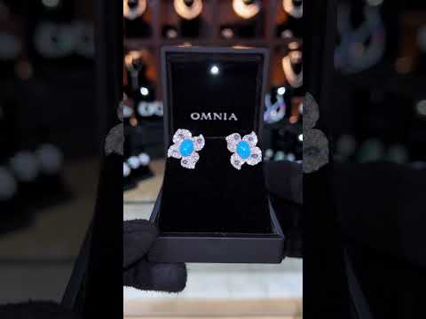 Omnia Rayan Turqoise Coral Flower Stud Earrings in 925 Silver In High Quality Simulated Diamonds