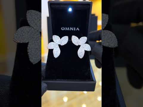 Omnia Rhina White Floral Petal Earrings with Pave-Set High-Quality Zircon Stones in a Rhodium Plated Finish