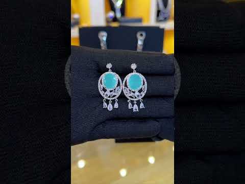 Omnia Rola Aqua Drop Earrings with White Zircon Accents in High Quality Rhodium Plated