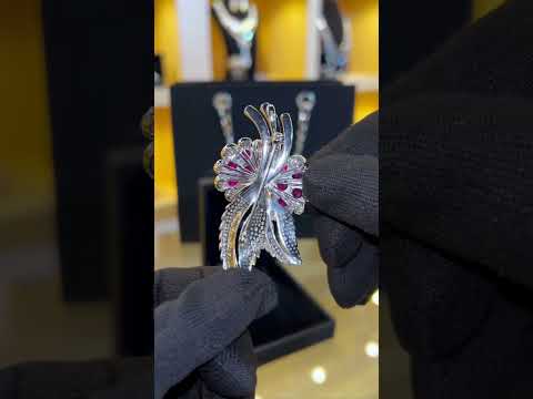 - Set of High Quality 92.5 Silver Ruby Floral Brooch