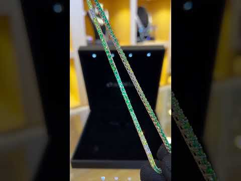 Omnia Saleen Green 3mm Tennis Necklace 42cm in 92.5 Silver High Quality Simulated diamonds