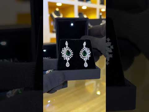 Omnia Sandra Green Set in High Quality Zircon Stone Rhodium Plated