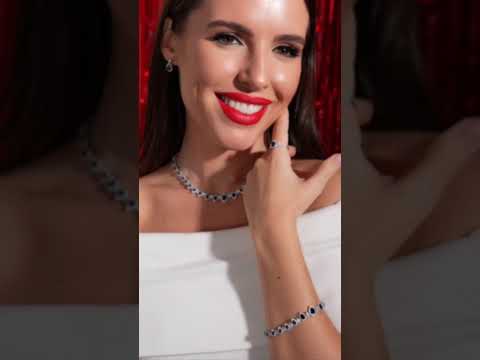 Indulge in the Omnia Sapphire Elegance Bridal Set, a breathtaking fusion of pear-cut simulated sapphires and high-quality simulated diamonds, set in 925 sterling silver with a rhodium-plated finish. This luxurious set includes a necklace, earrings, bracelet, and ring, embodying elegance and sophistication.