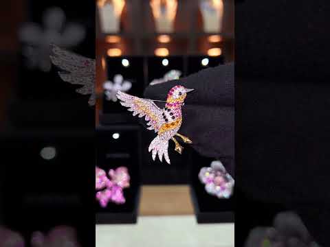 The Zena is defined by its "Prismatic Realism." The arrangement of stones mimics the natural gradient of exotic plumage, blending rich blues, vivid greens, and warm ambers with the sharp, icy fire of VVS-clarity white diamonds. This multi-tonal approach ensures that the brooch complements a vast array of garment colors, making it one of the most versatile statement pieces in the Omnia collection.