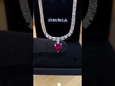 Omnia Zohra White and Red Heart Shape Pendant Necklace In 925 Silver High Quality Certified Lab Crafted Stones